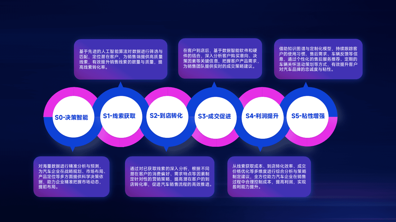 通过拓宽潜在客户来源、、、优化线索分配并提高到店转化率,,,以增强销售效率。。。。同时,,,,利用线索数据不断优化分析模型,,,,有效提升转化率,,,扩大营销影响力。。